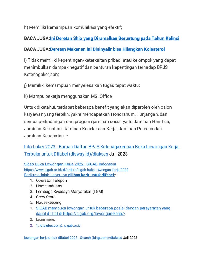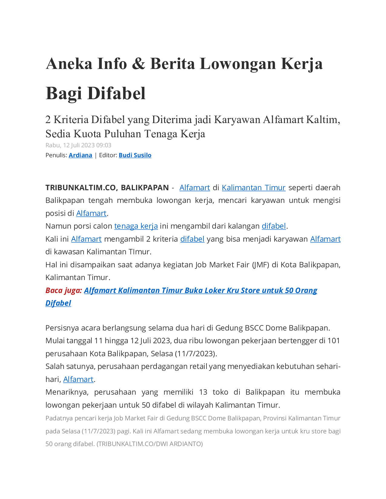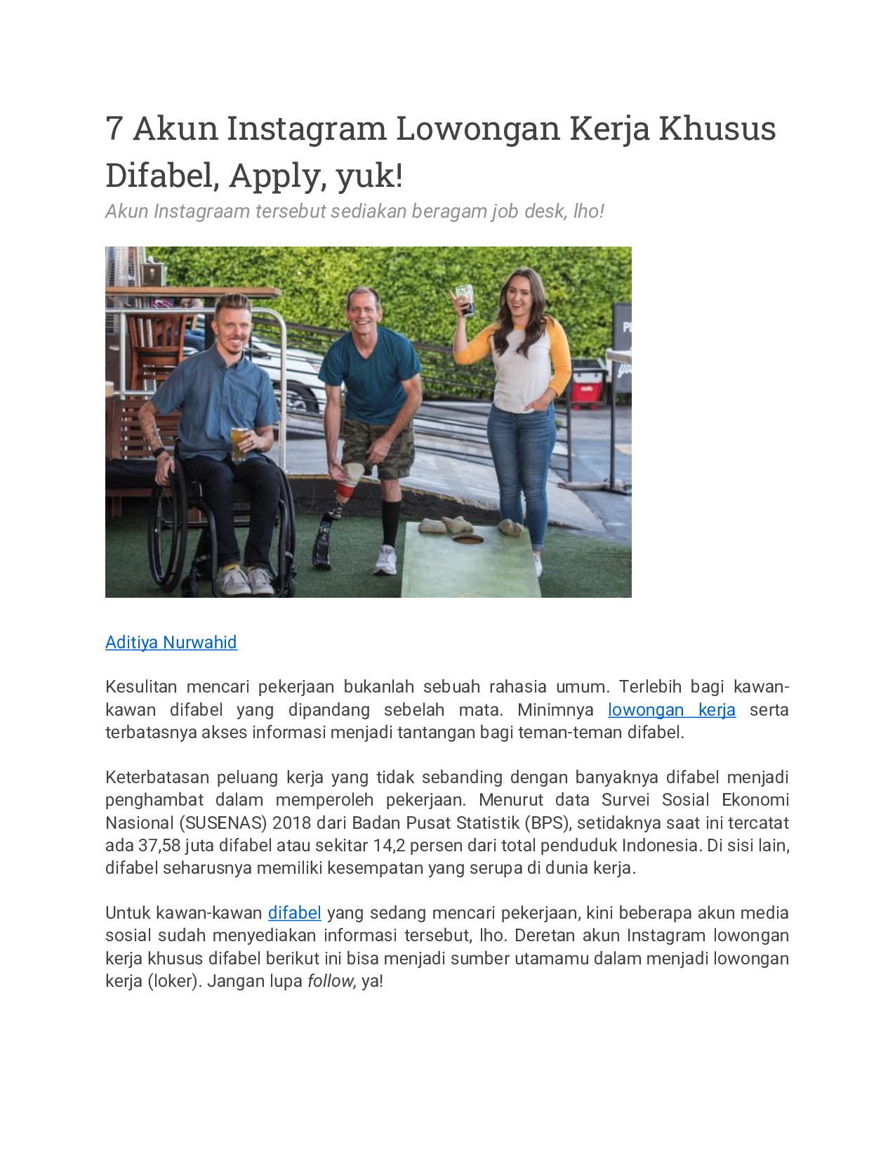 Aneka Info & Berita Lowongan Kerja Bagi Difabel