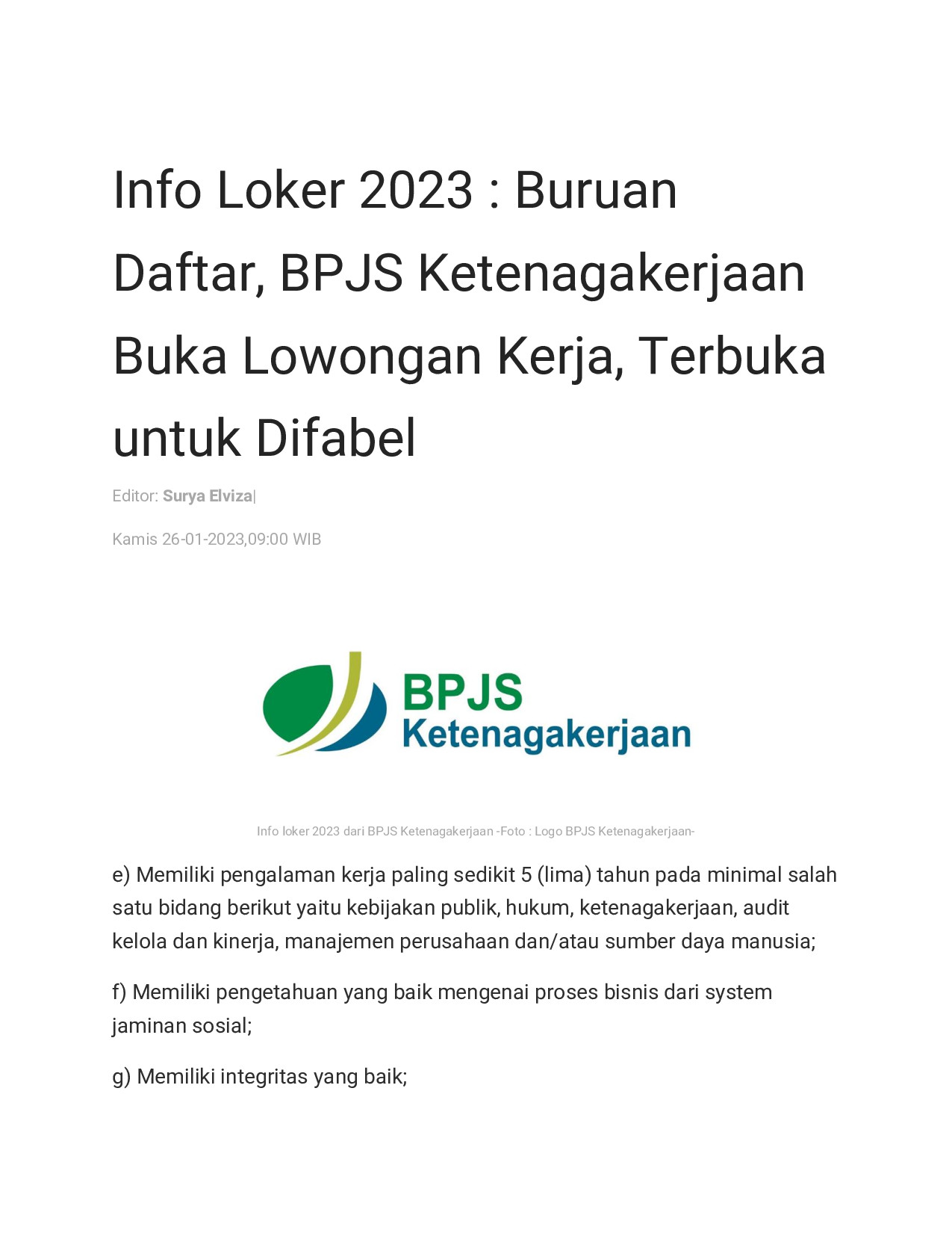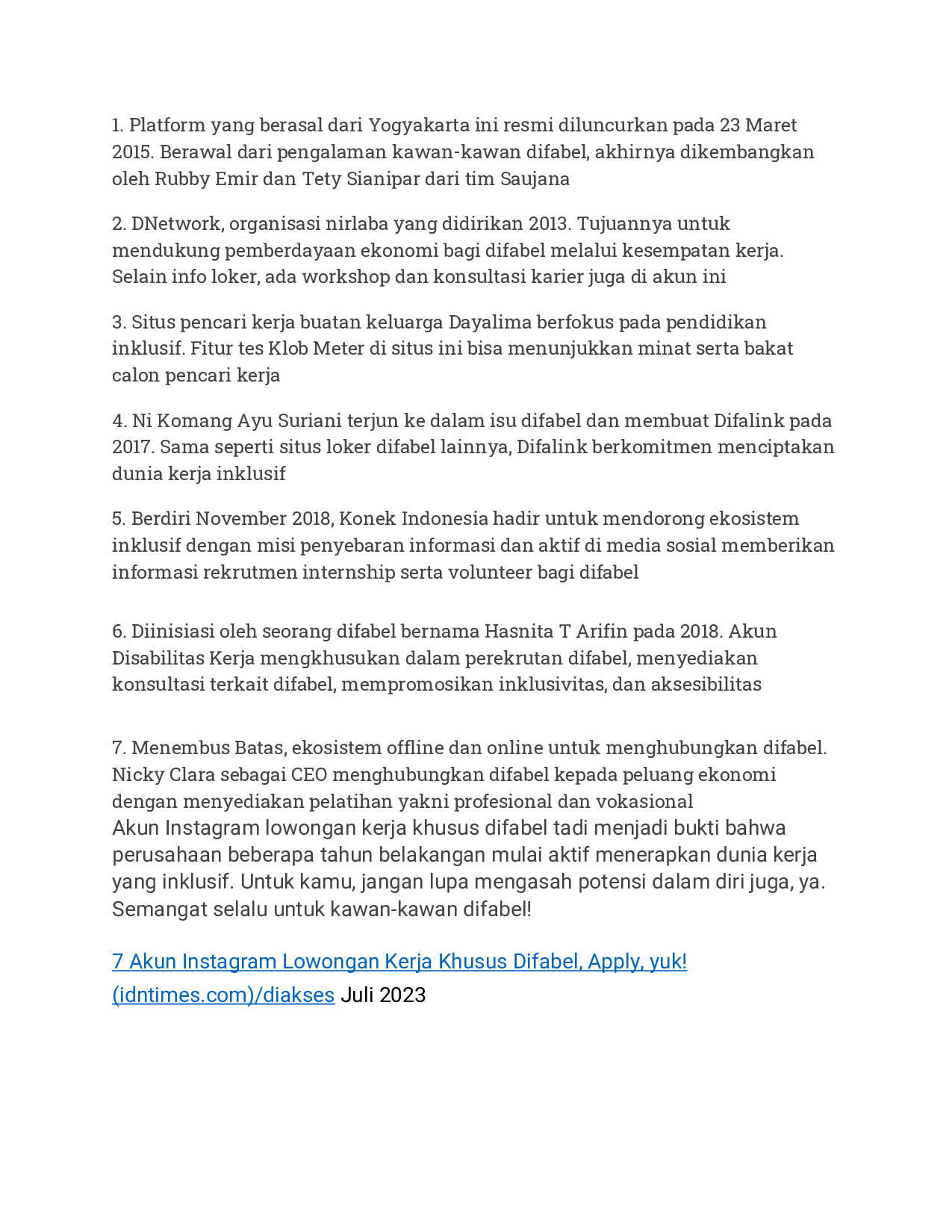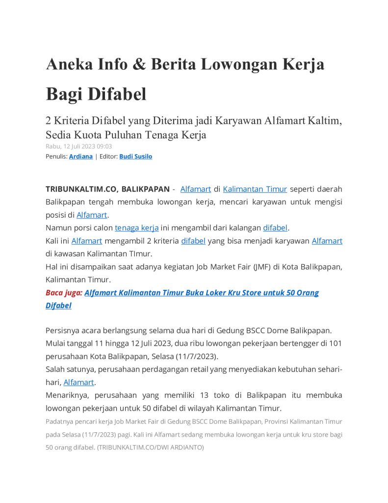 Aneka Info & Berita Lowongan Kerja Bagi Difabel