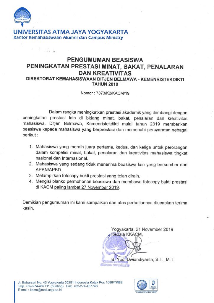 Beasiswa Peningkatan Prestasi Minat, Bakat, Penalaran, dan Kreativitas – Kemenristekdikti 2019