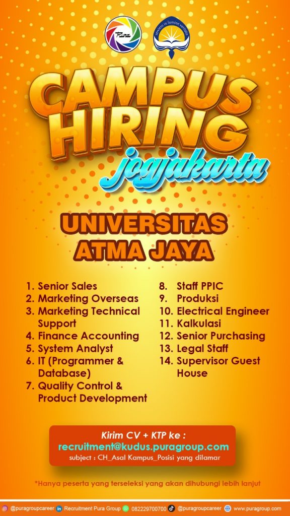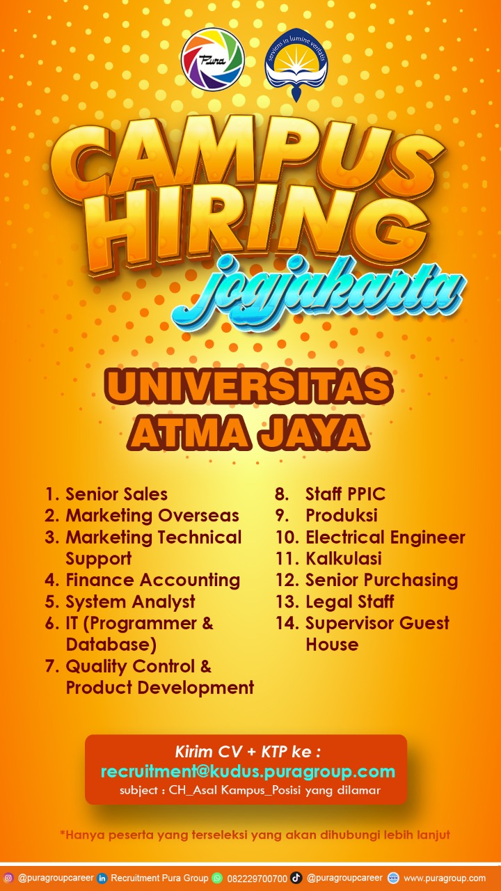 nfo lowongan pekerjaan PURA GROUP, Posisi yang dibutuhkan: