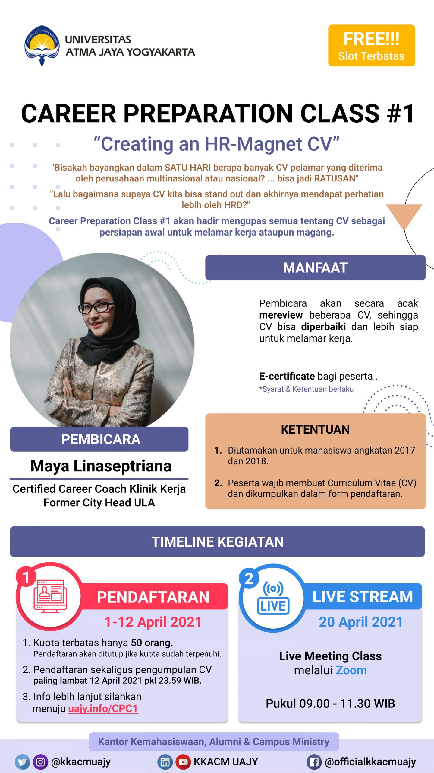 – Info lebih lanjut silahkan menuju link : uajy.info/CPC1