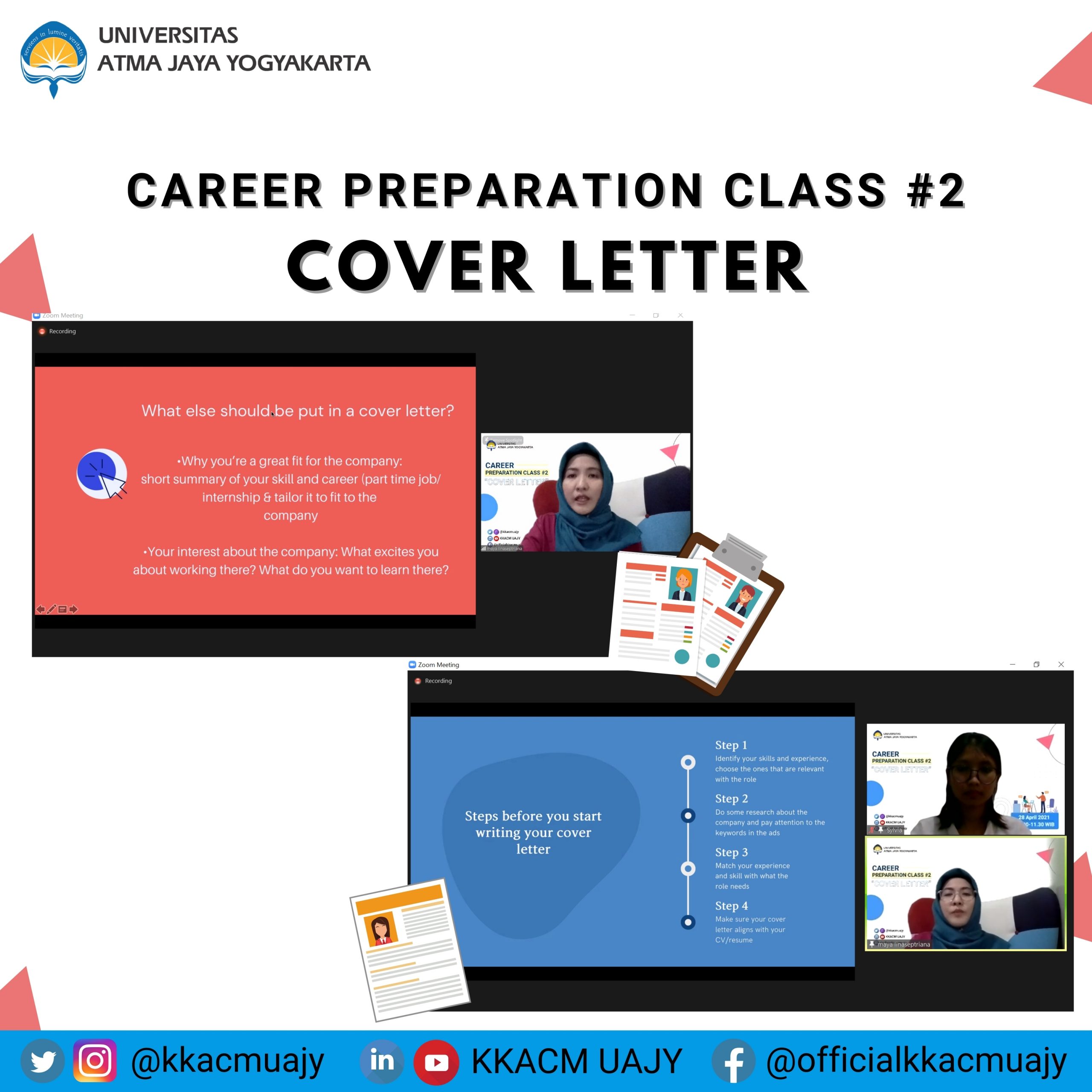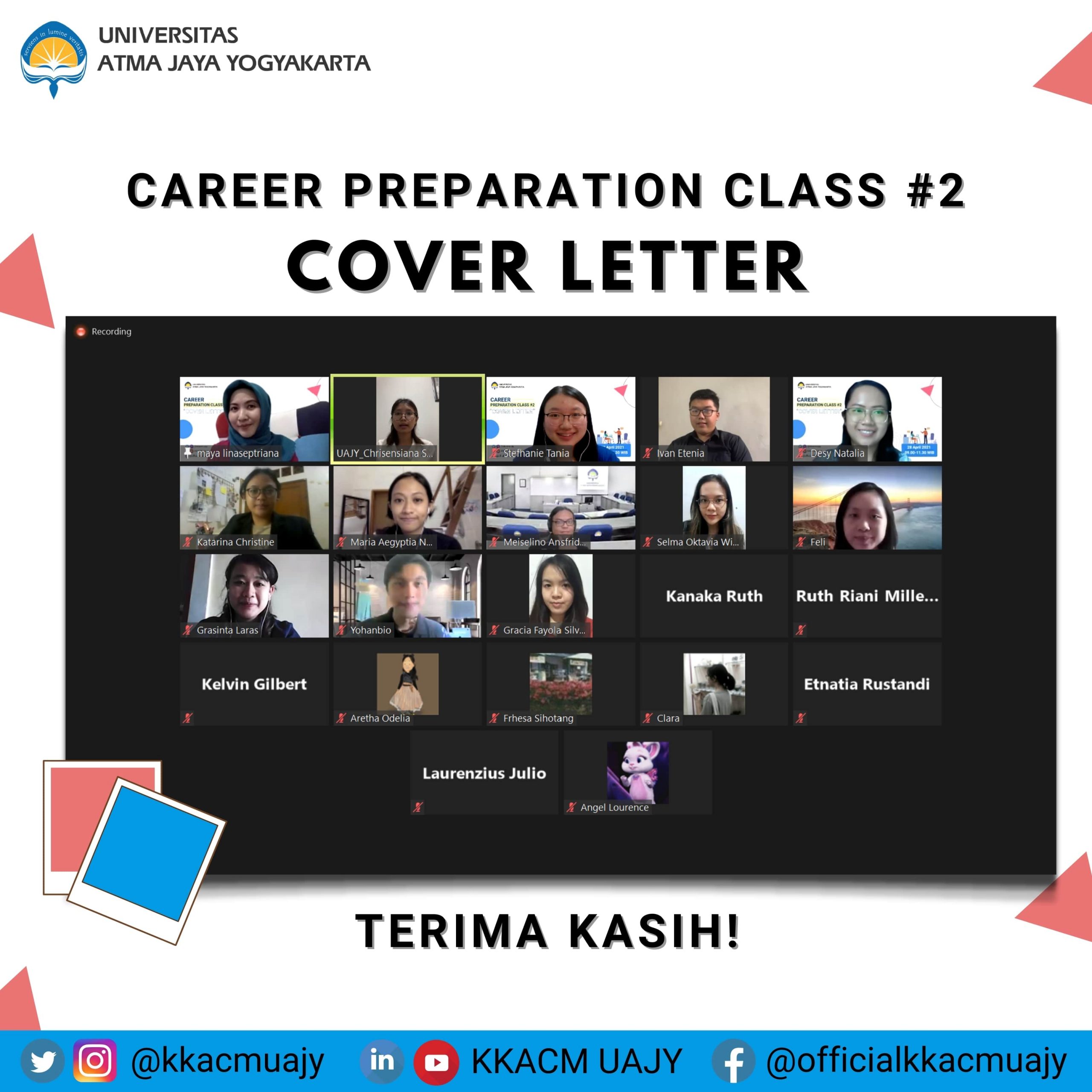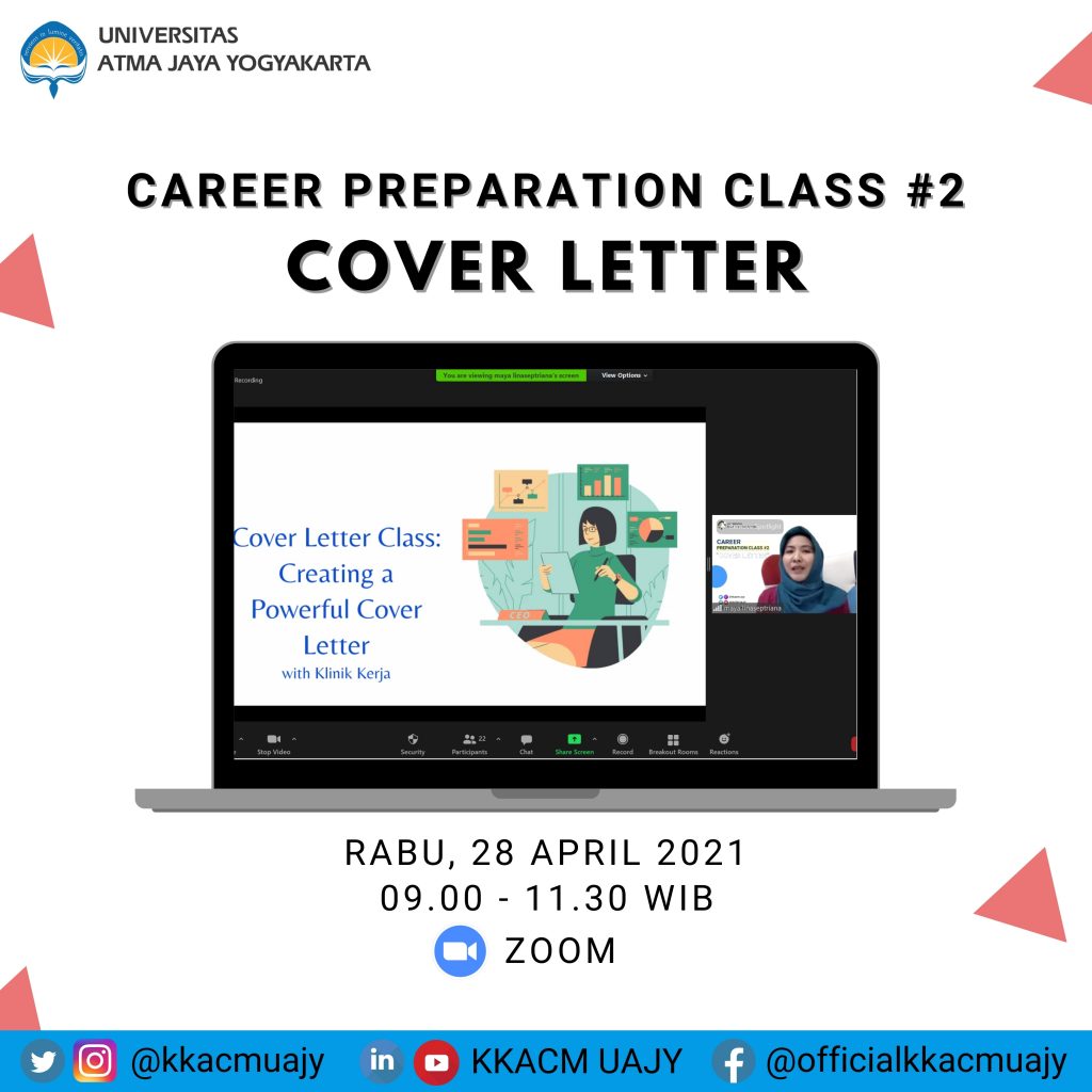 Universitas Atma Jaya Yogyakarta telah dilaksanakan oleh Kantor Kemahasiswaan Alumni dan Campus Ministry (KKACM) dengan tema “Cover Letter” pada tanggal 28 April 2021 secara daring melalui platform Zoom.