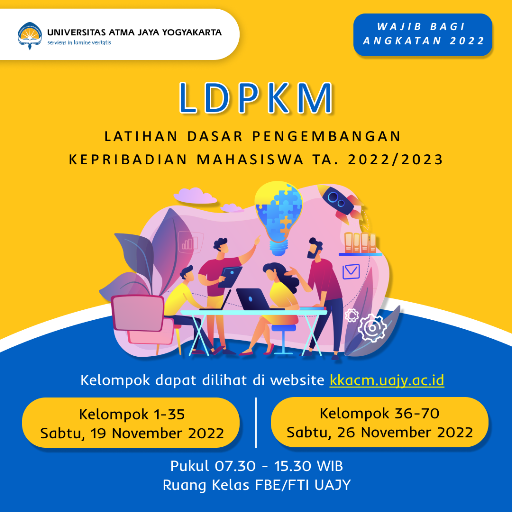 Ada info menarik yang pastinya sangat dinantikan oleh teman-teman Mahasiswa Baru UAJY yaitu Latihan Dasar Pengembangan Kepribadian Mahasiswa (LDPKM) 2022-2023
