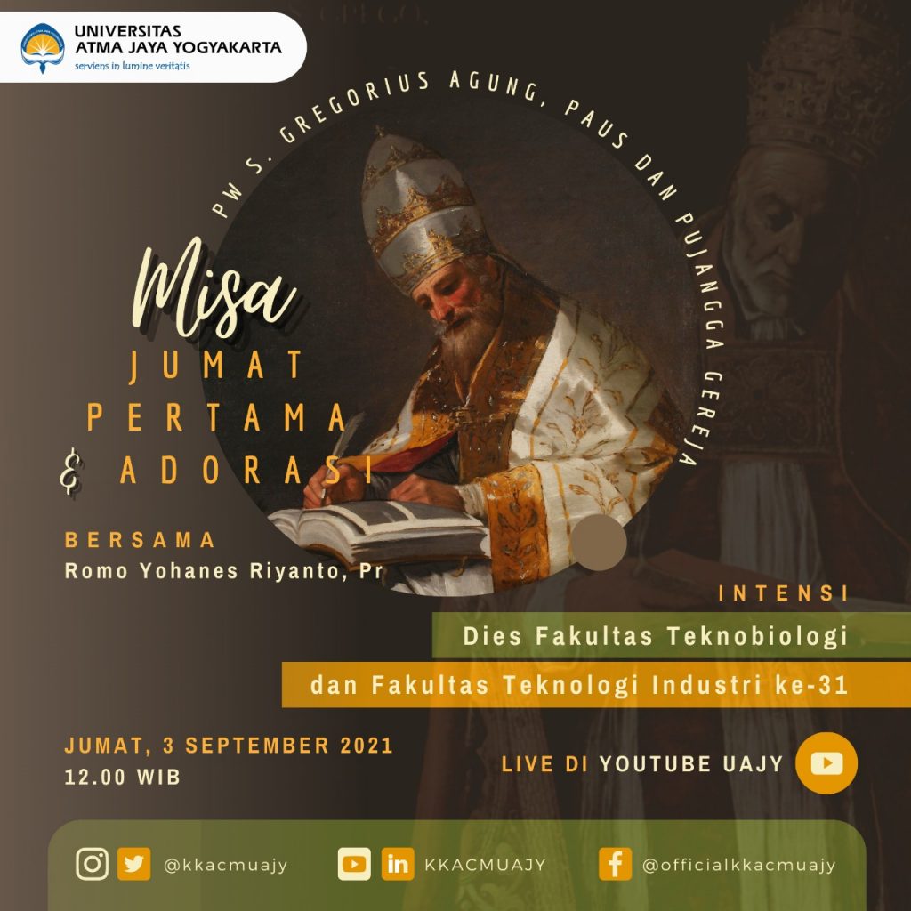 Mengundang segenap Civitas Academica UAJY dalam Misa Jumat Pertama dan Adorasi bulan September yang akan dipimpin oleh Rm. Yohanes Riyanto, Pr pada:
