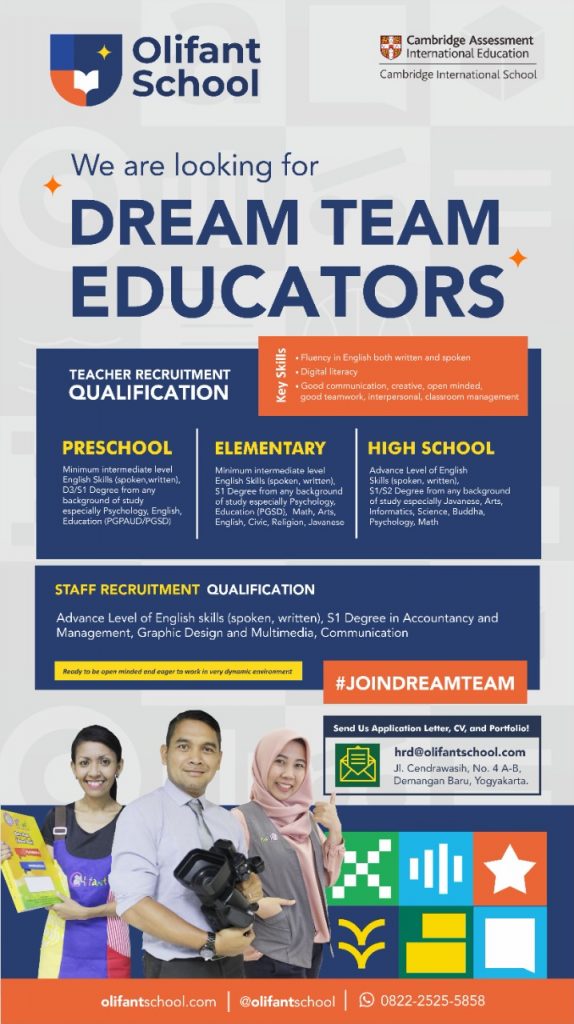 Info lowongan pekerjaan OLIFANT SCHOOL, Posisi yang dibutuhkan: