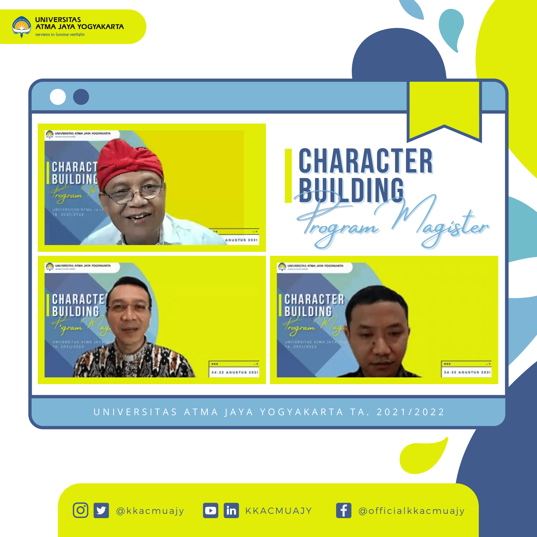 Kantor Kemahasiswaan, Alumni, dan Campus Ministry UAJY telah menyelenggarakan Pelatihan Character Building bagi Mahasiswa/i Program Magister TA. 2021/2022.