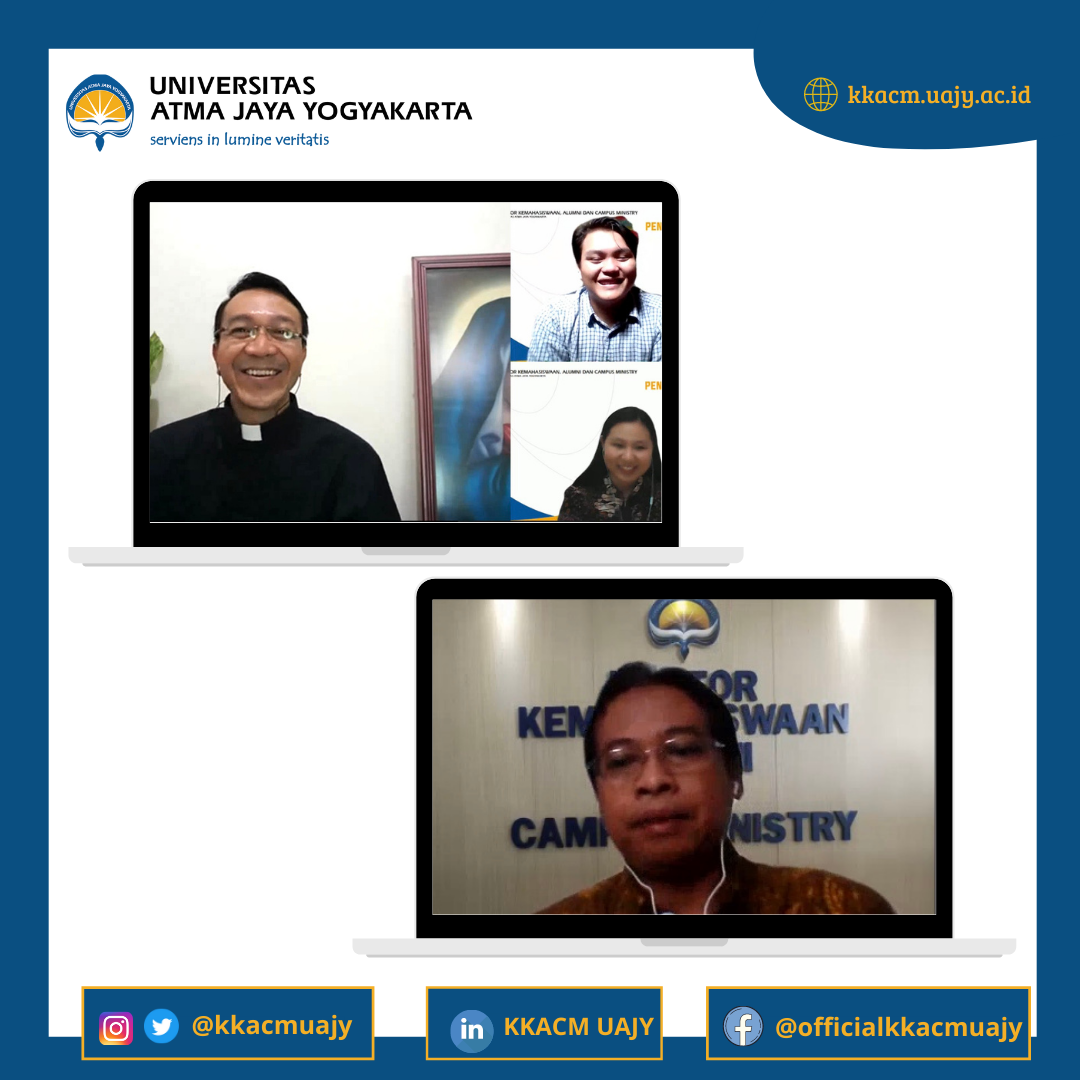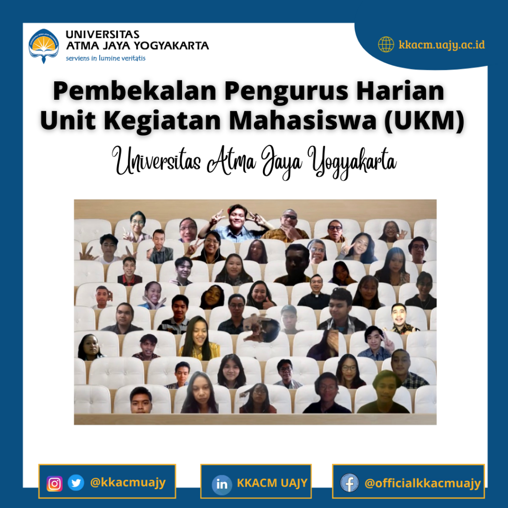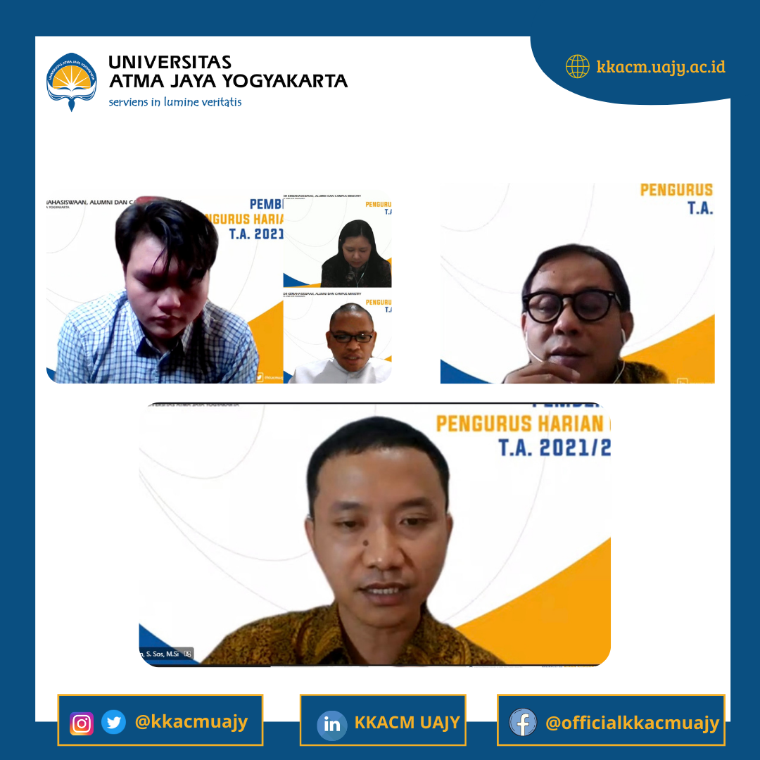 Universitas Atma Jaya Yogyakarta melalui Kantor Kemahasiswaan Alumni dan Campus Ministry (KKACM) mengadakan Pembekalan Calon Wisudawan Periode Agustus 2021 bagi para wisudawan yang hendak diwisuda Sabtu, 28 Agustus 2021.