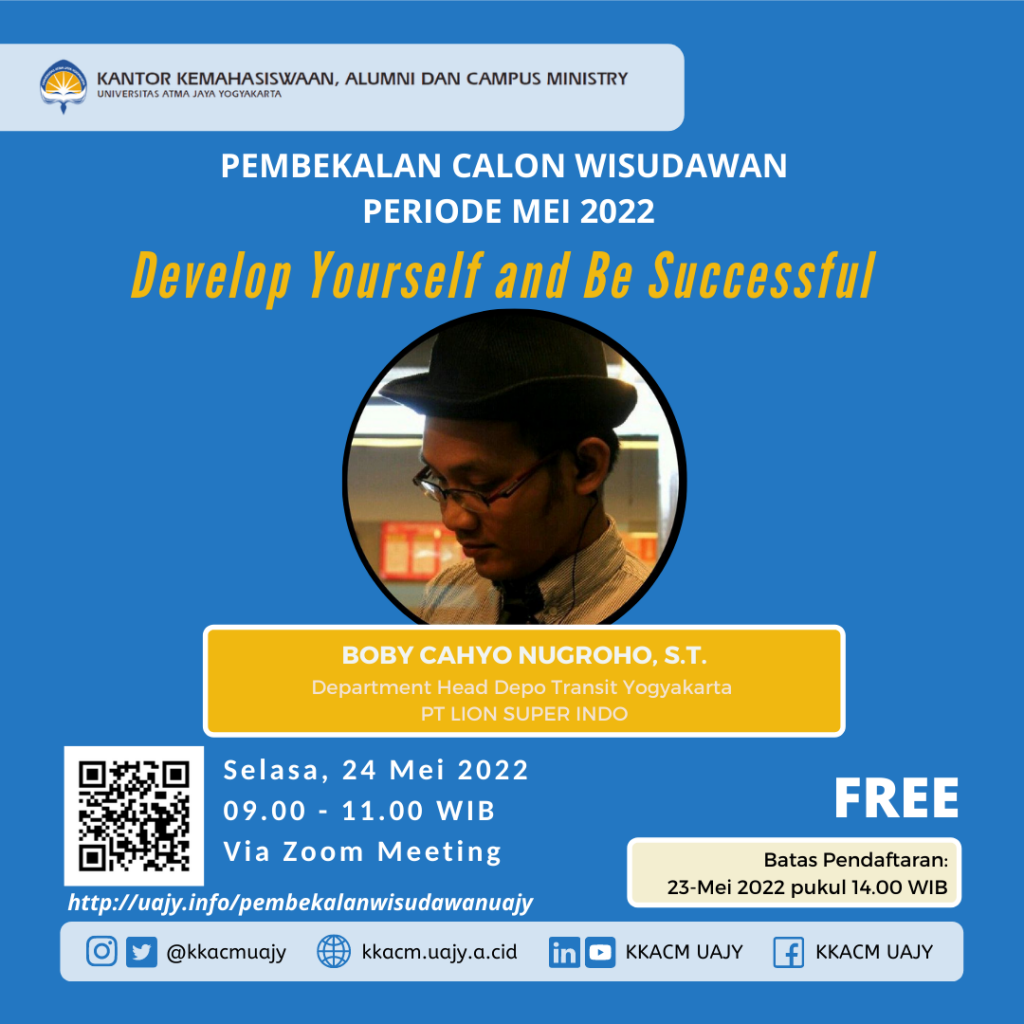 Nah, kami sekaligus mengundang seluruh Calon Wisudawan Periode Mei 2022 untuk hadir pada Pembekalan Calon Wisudawan:
