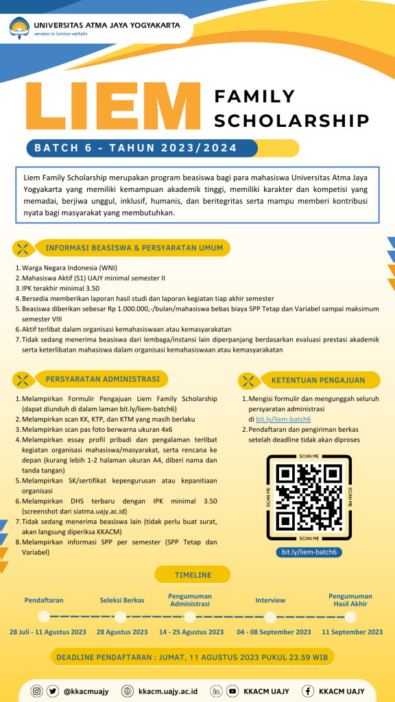 Pendaftaran LIEM FAMILY SCHOLARSHIP BATCH 6 TA 2023/2024