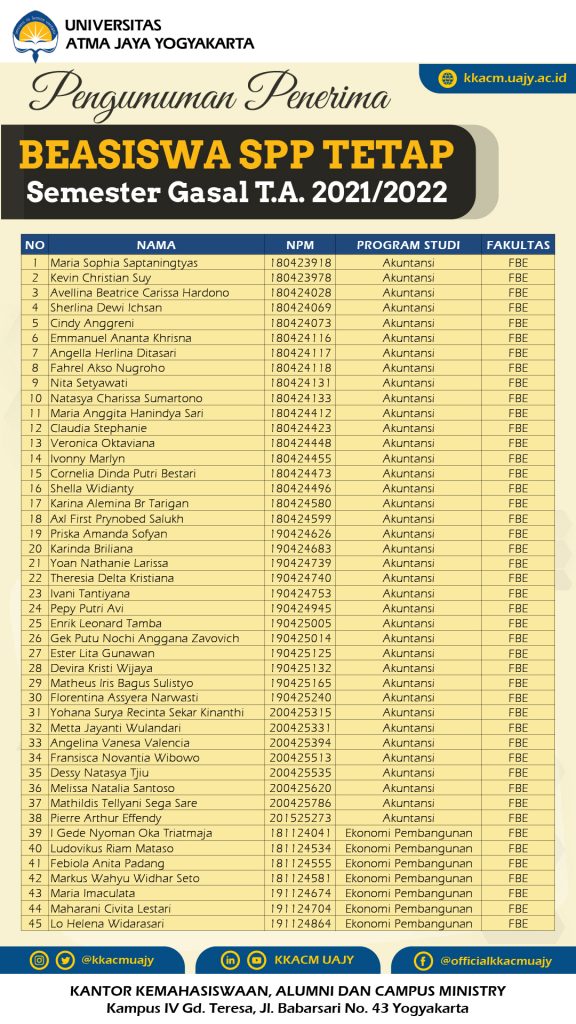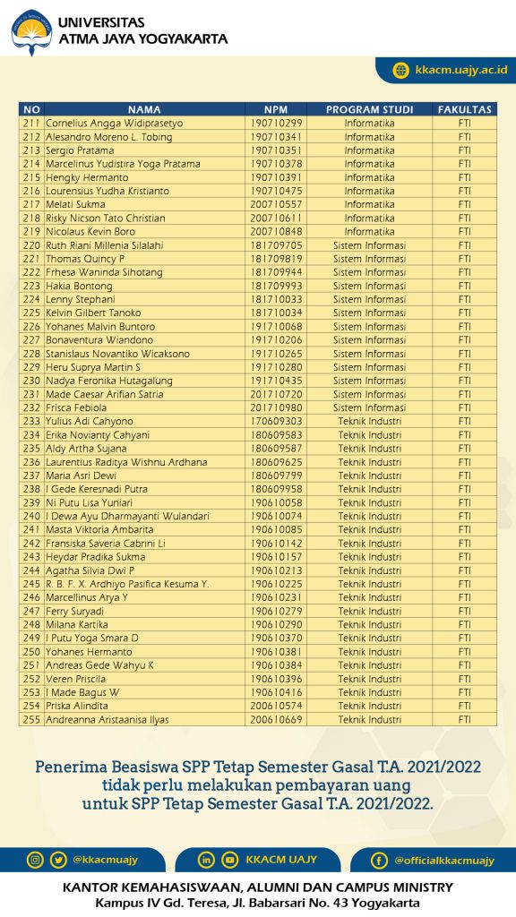 Pengumuman Penerima Beasiswa SPP Tetap Semester Gasal TA 2021/2022