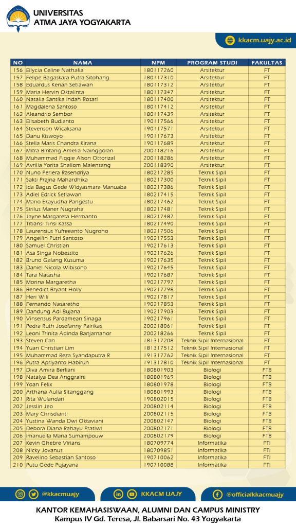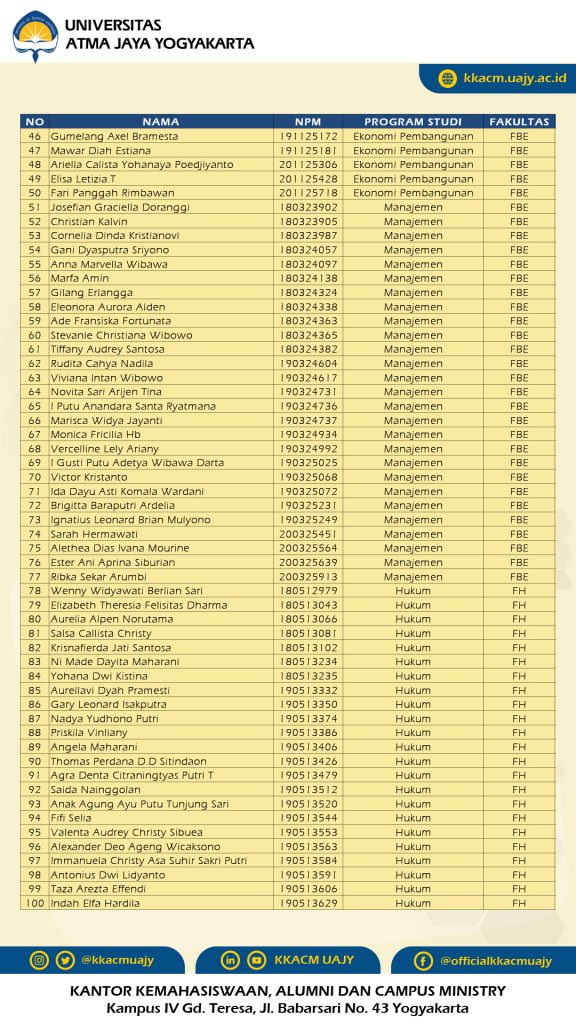 Jadwal kegiatan pemakaian aula kampus Mrican UAJY