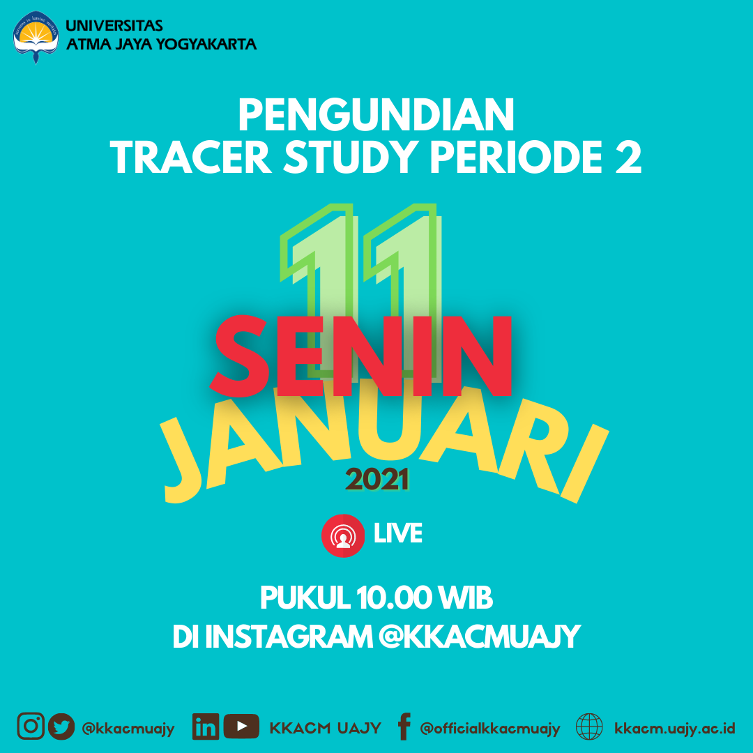 [PENGUMUMAN]Saksikan pengundian hadiah Tracer Study Periode 2.Live dr IG kkacmuajy hari Senin, 11 Januari 2021 pkl. 10.00 WIB.Jangan sampai terlewat ya.Salam sehat, salam semangat.