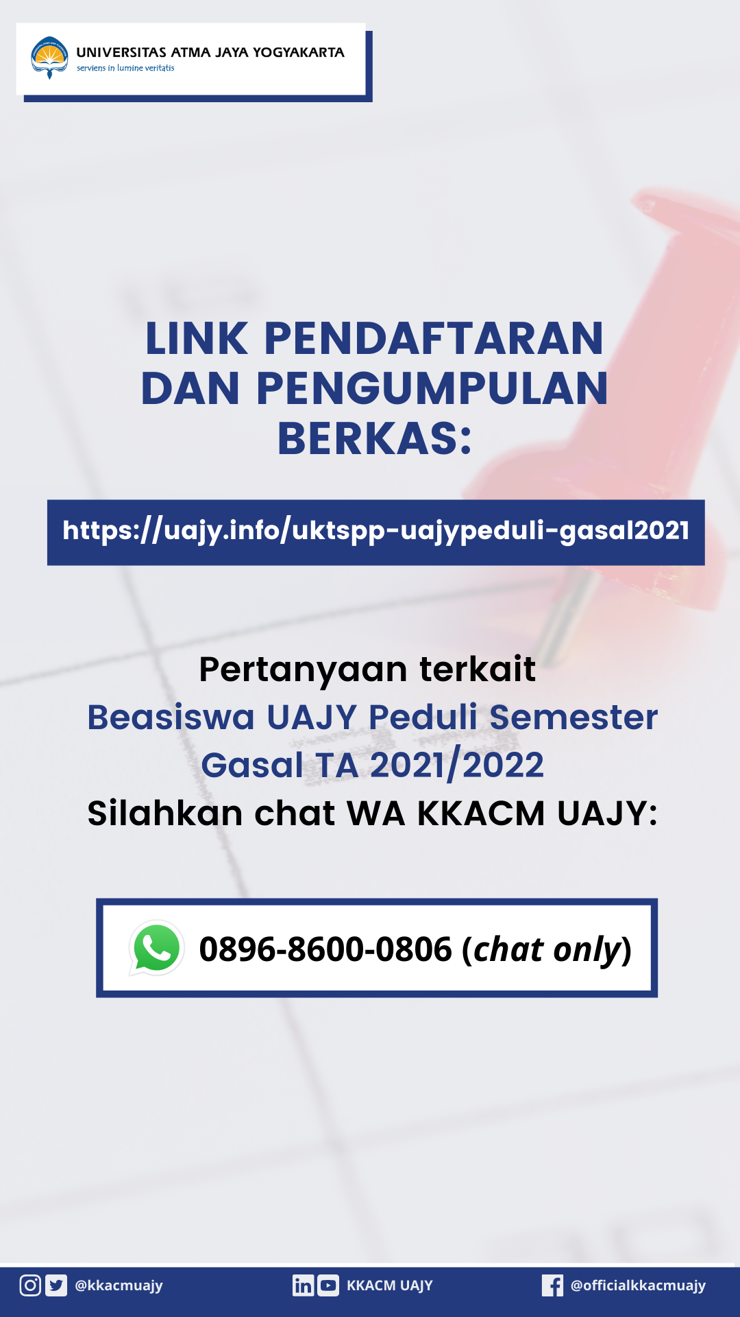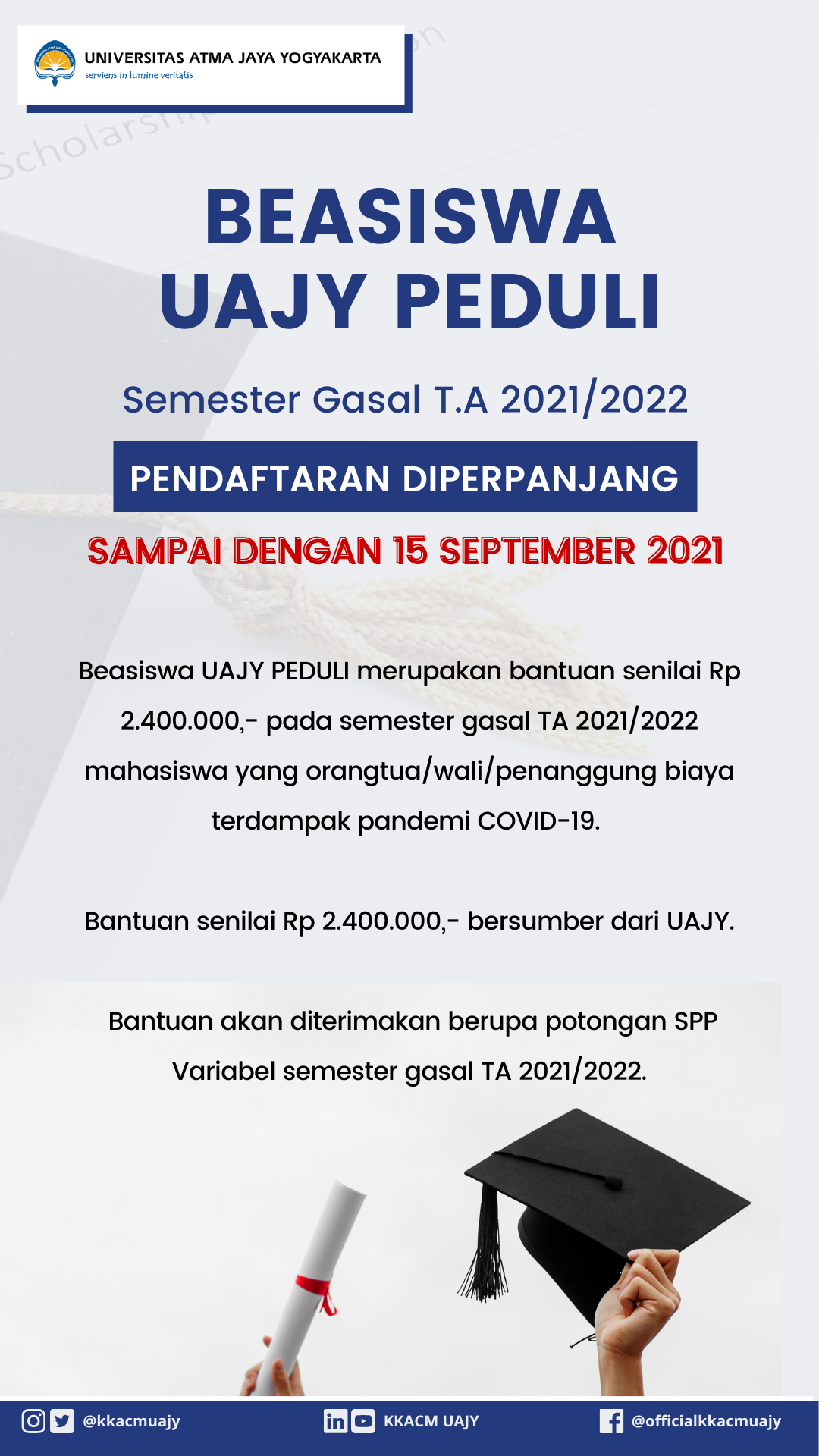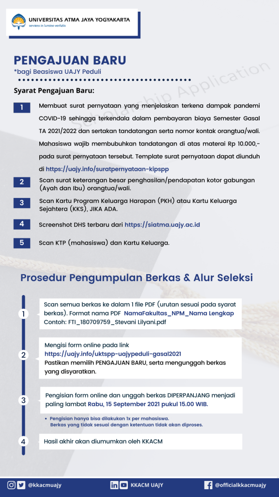PERPANJANGAN PENDAFTARAN BEASISWA UAJY PEDULI : 15 SEPTEMBER 2021