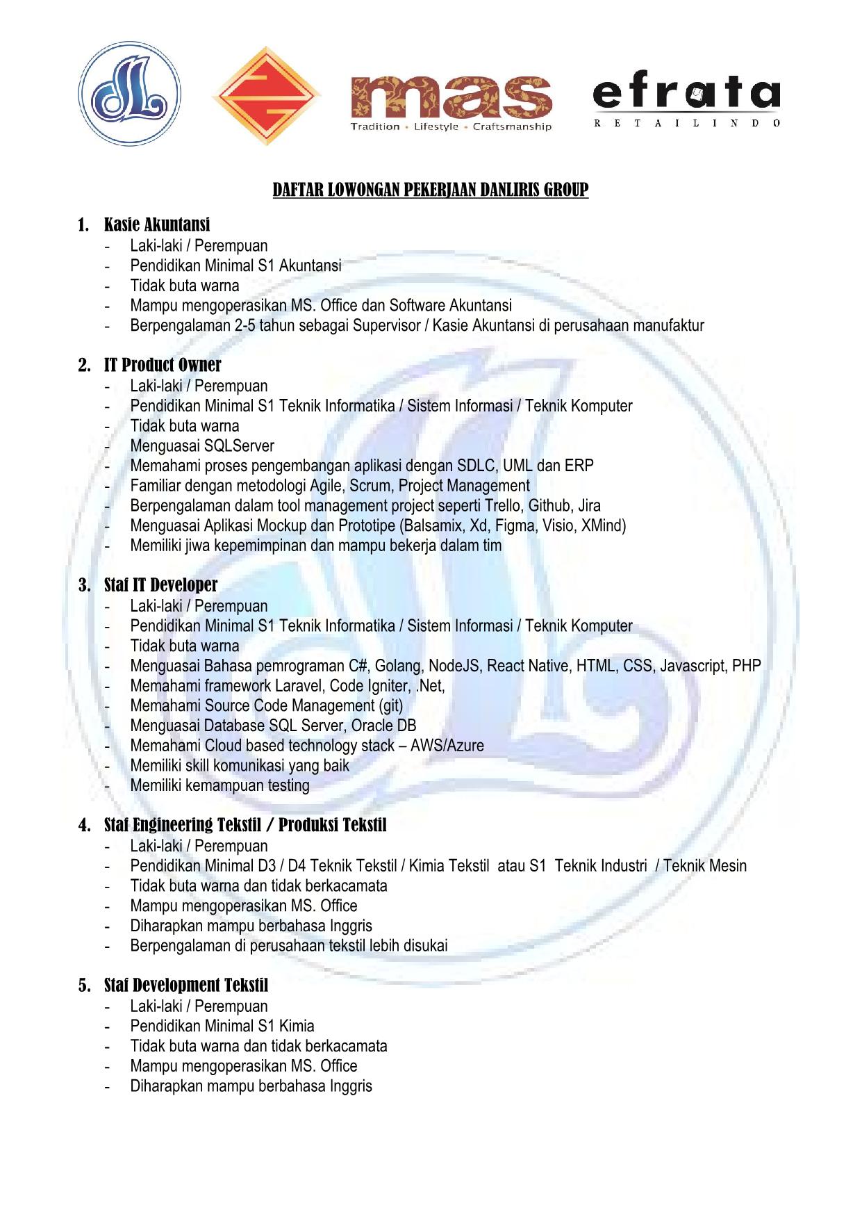 Posisi yang dibutuhkan silahkan cek pada poster.