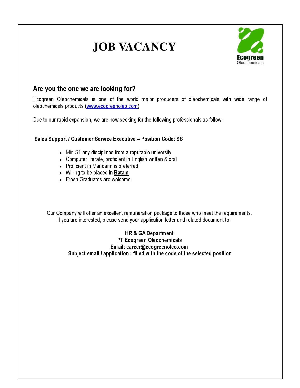 PT. Ecogreen Oleochemicals – customer-service-executive-2017