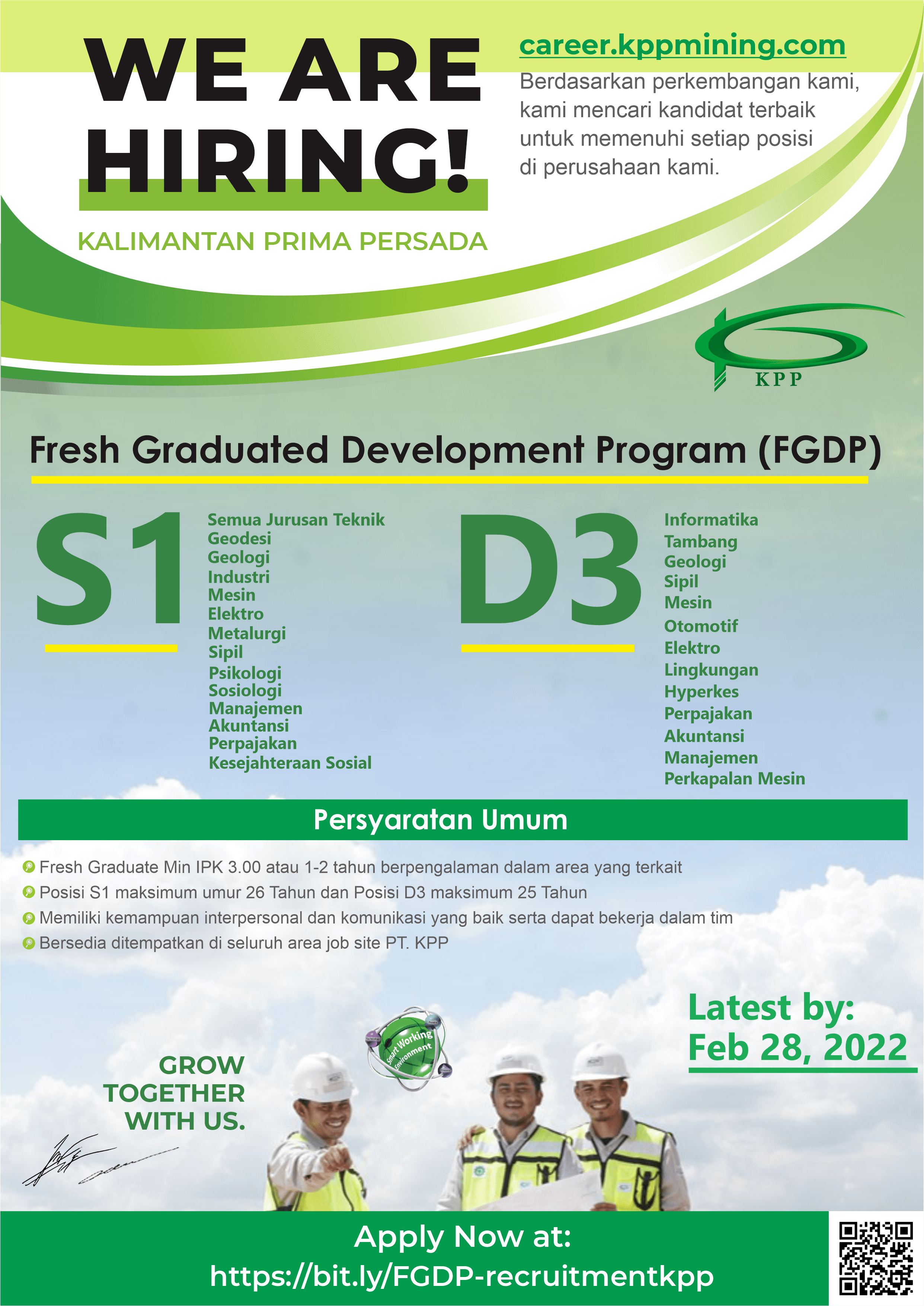[LOWONGAN KERJA]Info lowongan pekerjaanPT KALIMANTAN PRIMA PERSADA, Posisi yang dibutuhkan:• Fresh Graduated Development Program (FGDP)