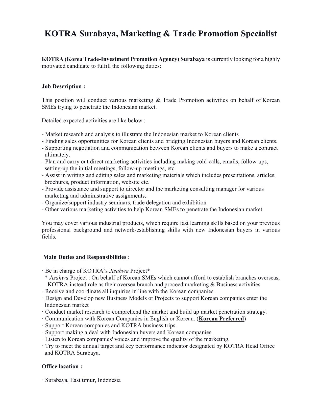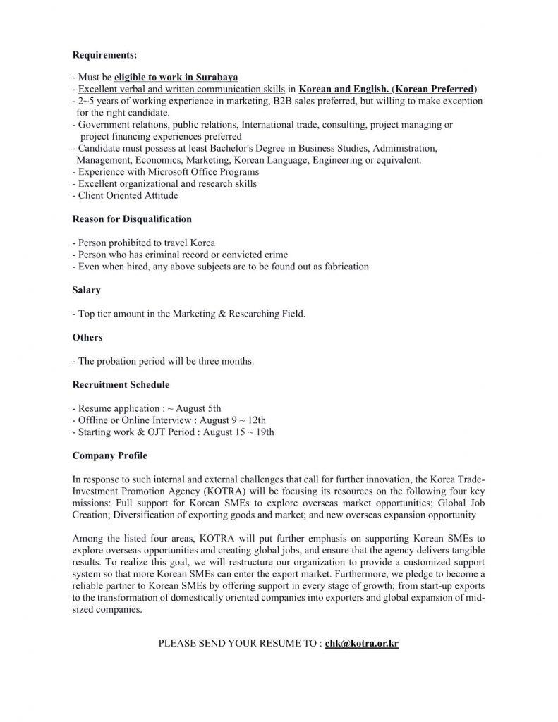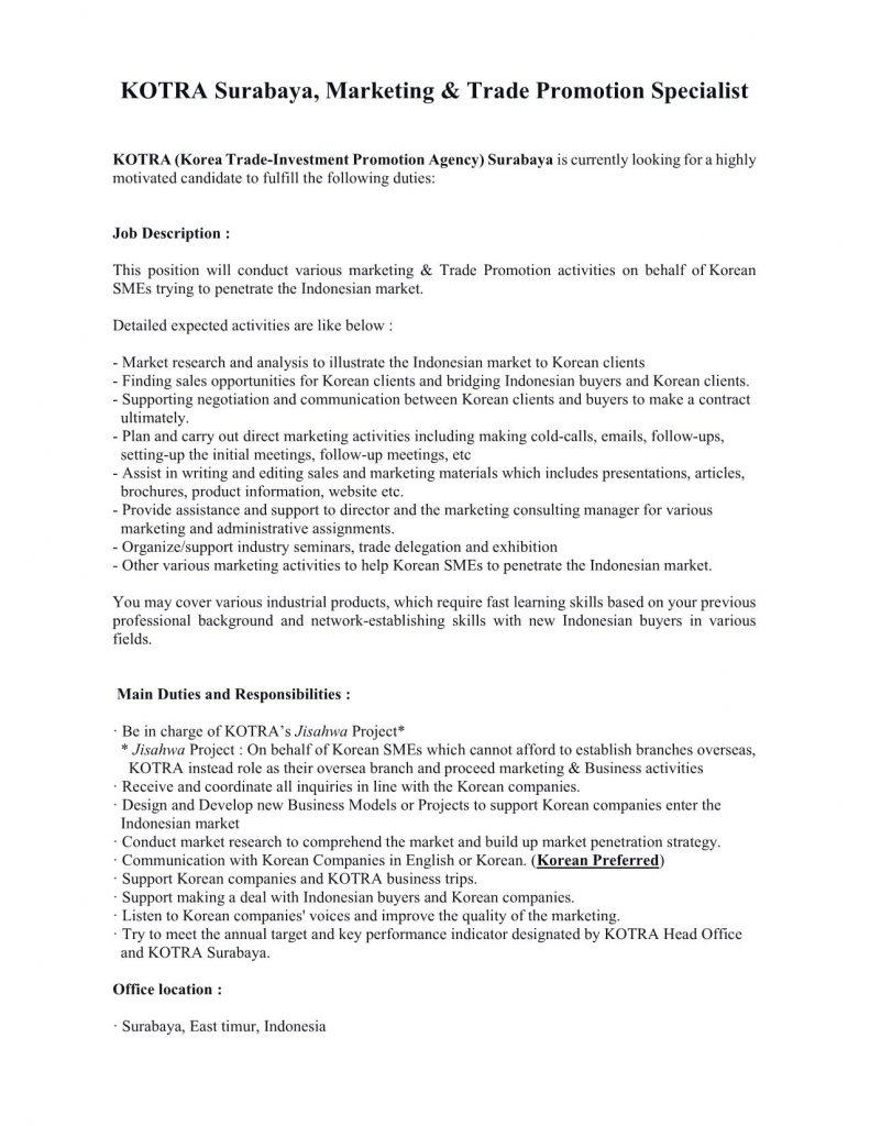 Info lowongan pekerjaan di PT. KOTRA SURABAYA. Posisi yang dibutuhkan: