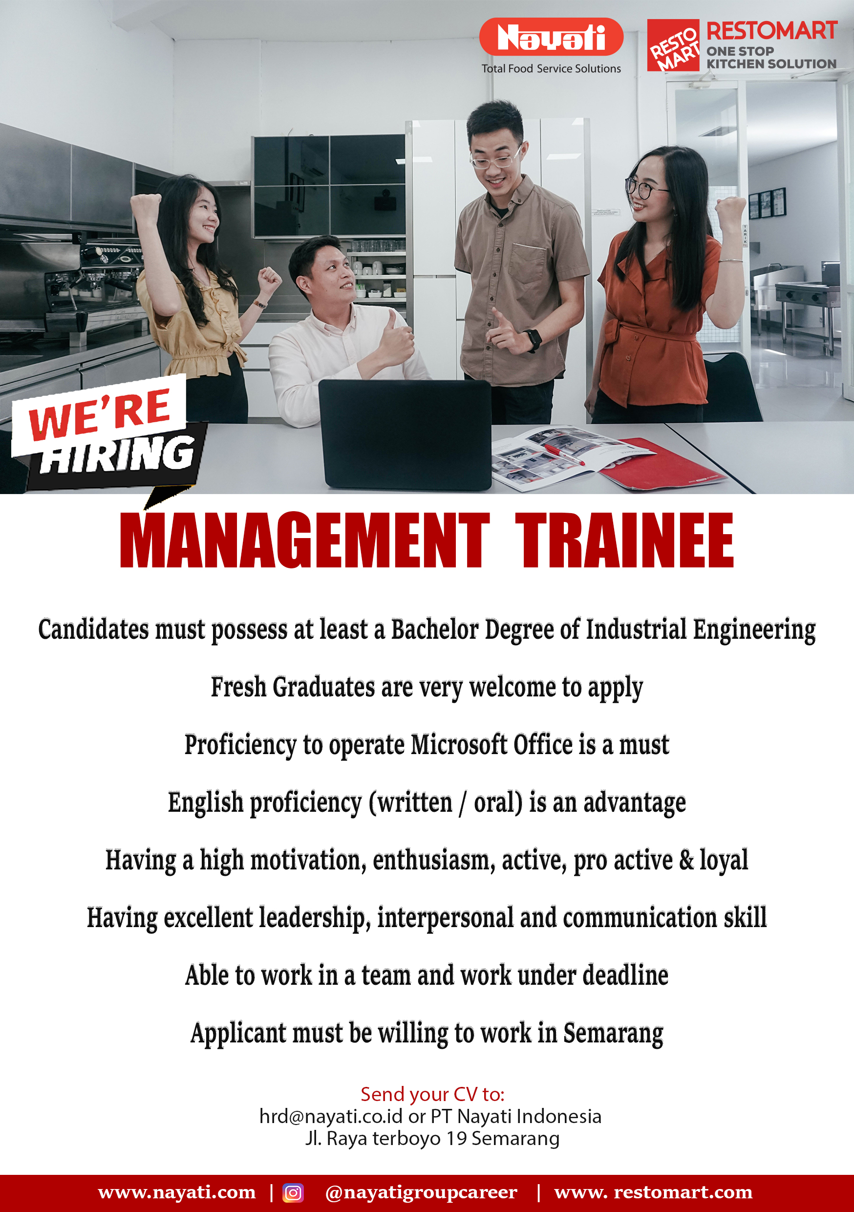 [LOWONGAN KERJA]Info lowongan pekerjaan PT Nayati Indonesia, Posisi yang dibutuhkan:• Management Trainee