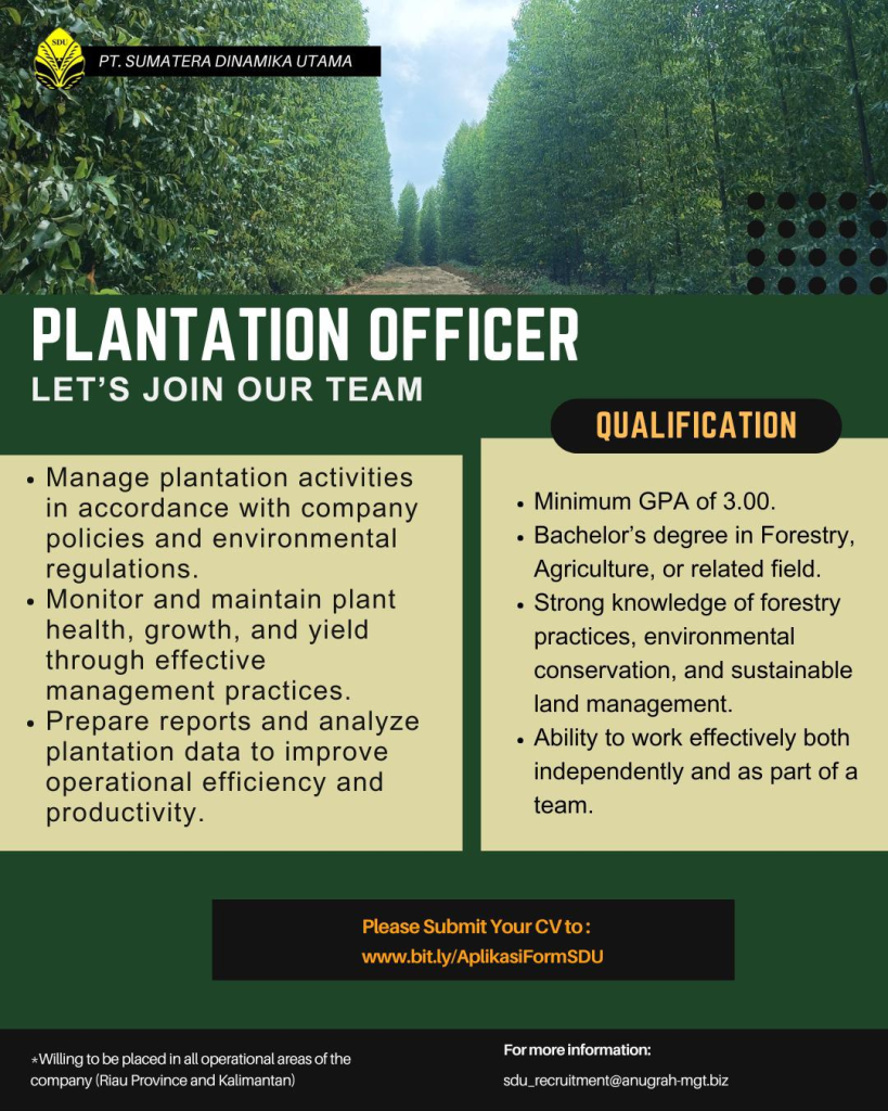 LOWONGAN SEBAGAI PLANTATION OFFICER