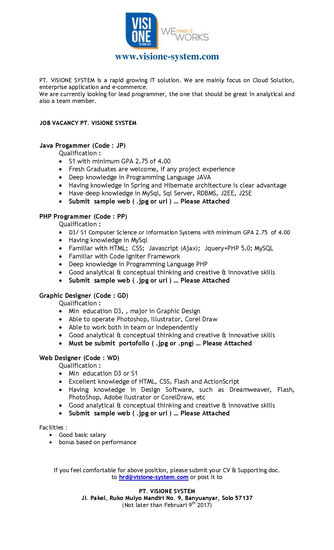 PT VisiONE System – Materi Iklan Lowongan Kerja