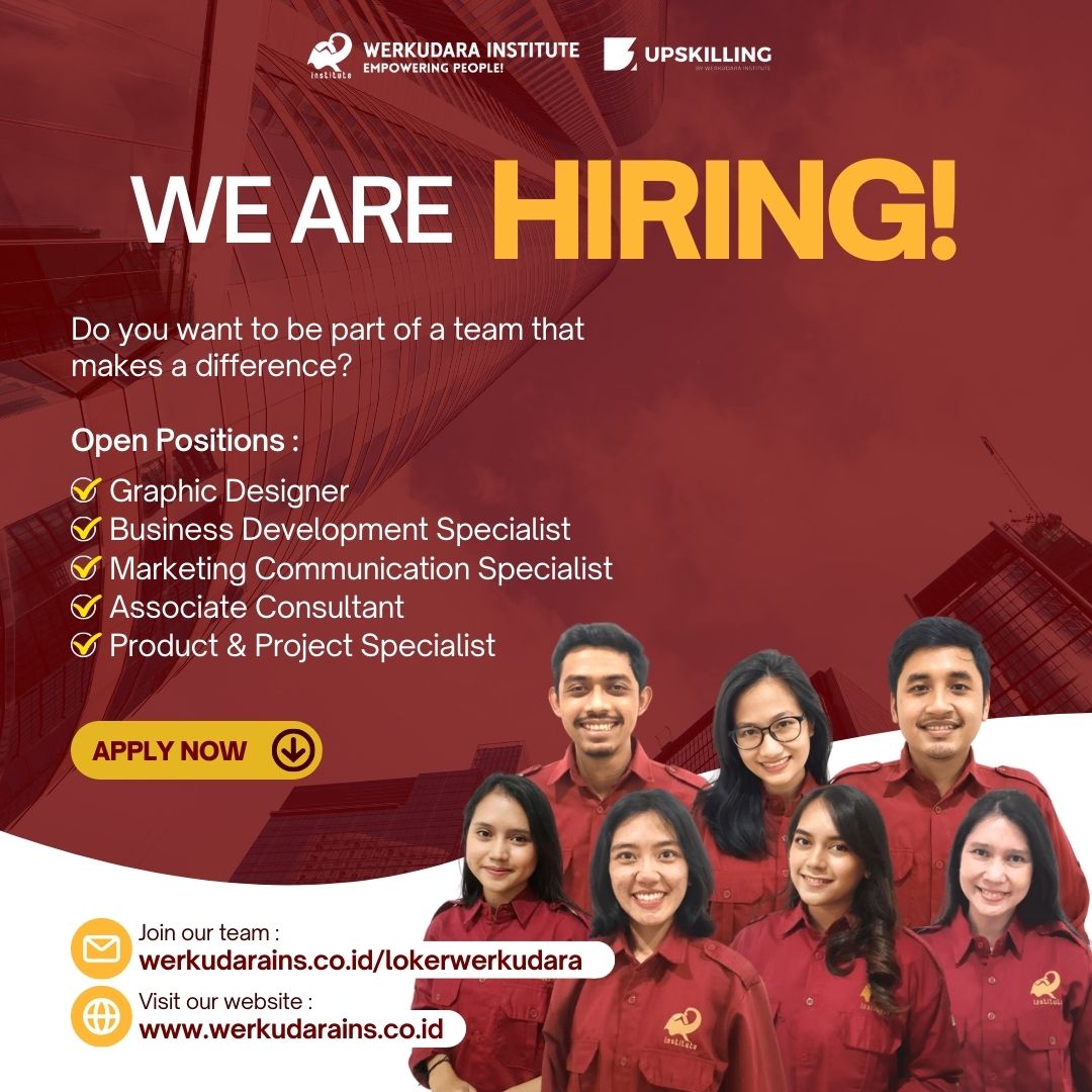 Info lowongan pekerjaan di PT. WERKUDARA SEMANGAT INDONESIA. Posisi yang dibutuhkan:1. GRAPHIC DESIGNER2. BUSINESS DEVELOPMENT SPECIALIST3. MARKETING COMMUNICATION SPECIALIST4. ASSOCIATE CONSULTANT5. PRODUCT & PROJECT SPECIALIST