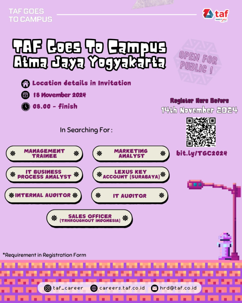 Berikut link pendaftaran untuk TAF CAREER : http://bit.ly/TGC2024