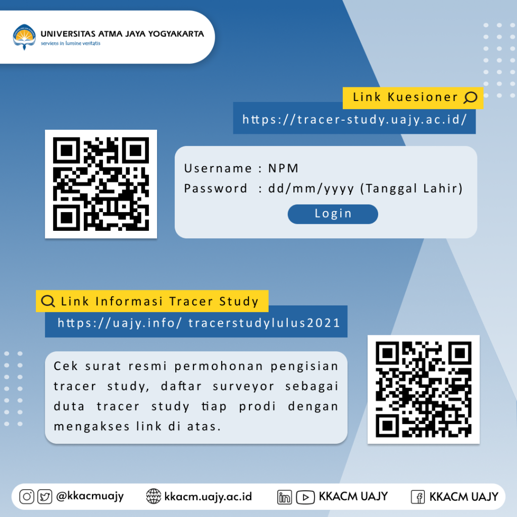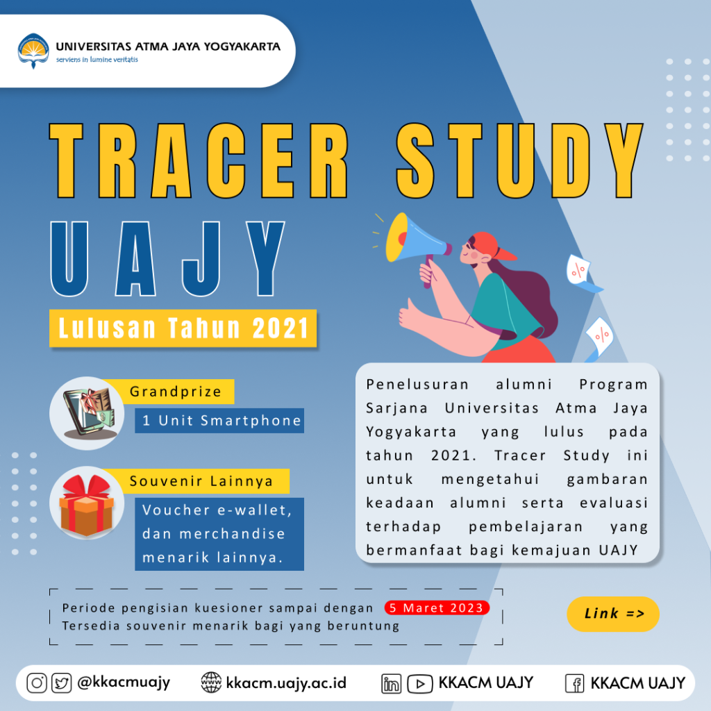 KKACM memberikan info penting bagi kalian alumni UAJY tahun 2021, untuk diharapkan berpartisipasi mengisi kuesioner Tracer Study.
