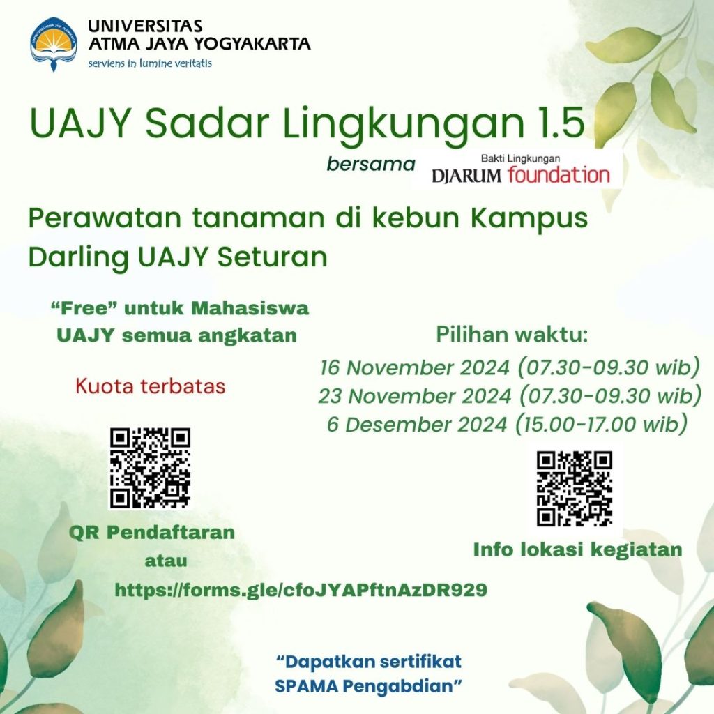 UAJY Sadar Lingkungan 1.5 bersama Bakti Lingkungan Djarum Foundation