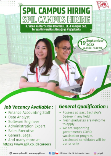 Mohon yang berminat langsung datang saja, membawa berkas lamaran.Cek info lowongan yang dibuka di www.spil.co.id/careers